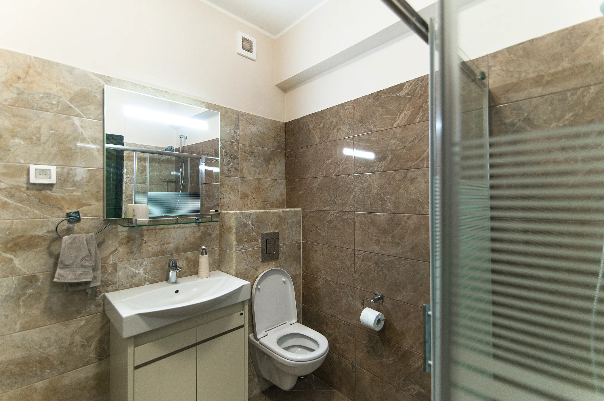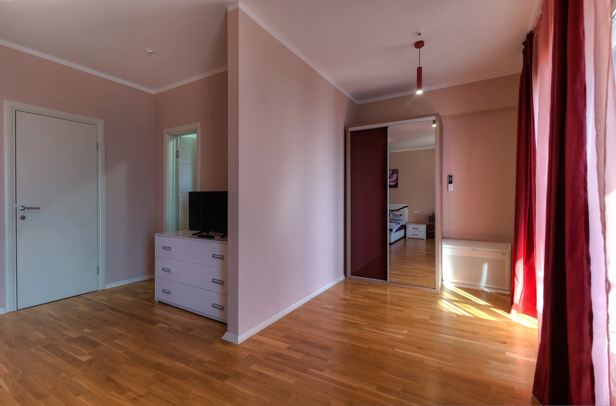 Thanks to the building’s unique architectural design, all apartments feature panoramic views of the Adriatic Sea, the mountains, and the Budva coastline. The beach is just 50 meters from the complex, while all urban and resort infrastructure is within walking distance, making the property highly attractive both for permanent residence and for real estate investment in Montenegro.